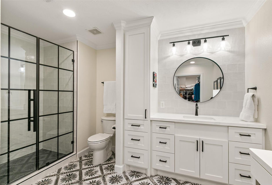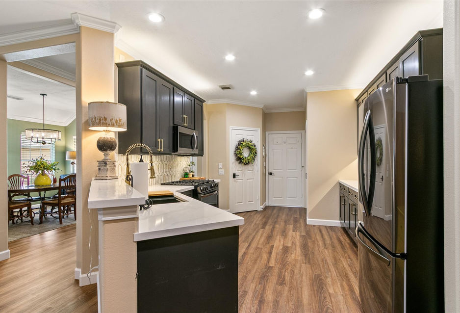 LUXURY REDEFINED! Experience the pinnacle of 55+ living in Windsor Lakes. This meticulously reimagined residence is a masterpiece of modern design, offering bespoke upgrades that set it apart. Step onto luxury vinyl plank flooring flowing through the airy open-concept floorplan. The kitchen is unrivaled, boasting designer cabinetry with custom pullouts, over/under-mount lighting, artisan quartz countertops and a sleek marble mosaic backsplash with gold inlays. Retreat to a primary suite featuring a spa-like ensuite with floor-to-ceiling tile, frameless glass shower and furniture grade vanity with linen closet and makeup area. Outside, enjoy the screened in patio overlooking a rare, large side yard with professional landscaping. Located minutes from The Woodlands Mall and world-class medical facilities, residents enjoy a resort-style clubhouse, heated pool, fitness center, and pickleball. Short walk to Lones Star College Acadamy of Lifelong Learning. Truly turn-key and low-maintenance.